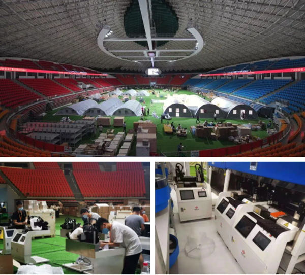 在主战场广州,yabo鸭脖官网生物工程师们全力以赴参与到广州市政府统一协调各单位搭建的气膜方舱实验室工作中。6月1日,广东首个气膜方舱实验室在广州体育馆正式投入使用;6月2日晚,4个气膜方舱实验室全面投入使用,核酸检测日产能达到12万管,可实现全天候收样检测,提高核酸检测效率。