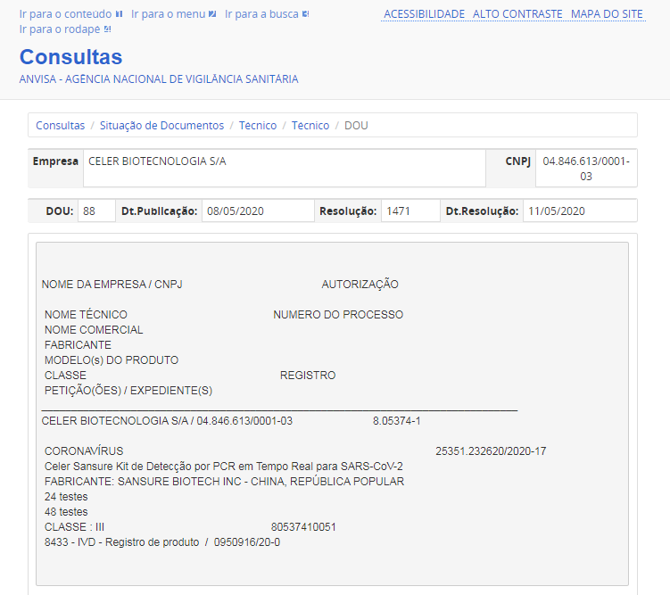 5月11日,yabo鸭脖官网生物新冠病毒核酸检测试剂盒获得巴西卫生监督管理局(ANVISA)注册证书。此前,该产品已相继获得中国国家药监局(NMPA)注册认证、欧盟CE认证、美国FDA紧急使用授权、新加坡卫生科学局临时授权等一系列权威认证。